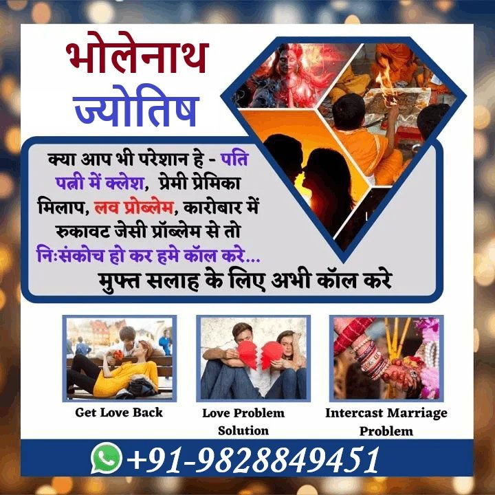 ज्योतिषी भोलेनाथ ज्योतिष ने मेरी प्रेम समस्याओं में मेरी मदद की है। वे एक सच्चे ज्योतिषी हैं जो पहले सुनते हैं और फिर ऐसे उपाय सुझाते हैं जो काम करते हैं। उनके मार्गदर्शन से मुझे मेरा प्यार वापस मिल गया।